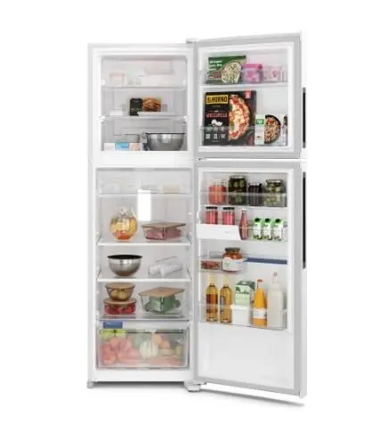 Ficha Técnica Medidas do produto sem embalagem com embalagem 184,7 cm Altura 60 cm Largura 71,7 cm Profundidade 57,6 kg Peso Especificações Material Aço Cor da porta Branco Capacidade líquida total (L) 410 L Este Produto inclui Água na porta Não Alarme de porta aberta Sim Compartimento congelamento rápido Sim Compartimento extra frio Sim Degelo automático Sim Iluminação Interna Sim Pés niveladores Sim Porta latas Não Porta reversível Não Rodízios Sim Separador de garrafas Não Puxadores Sim (Embutido) Máquina de gelo automática Não Trava painel de controle Não Controle de temperatura Automático Compartimento FlexiSpace Não Conectividade Não Filtro desodorizador Sim. TasteGuard (Vendido Separadamente) Especificações técnicas Instalação gratuita Não Capacidade líquida do freezer (L) 117 L Frequência 60 Hz Acabamento lateral Branco Capacidade bruta do refrigerador (L) 298 L Garantia do produto 1 ano EAN13 7909569470947 127V Classificação energética A+++ Acabamento frontal Branco Cor Branco Capacidade líquida do refrigerador (L) 293 L Altura do produto embalado 187,9 cm Peso bruto 59,6 kg Largura do produto embalado 64,9 cm Profundidade do produto embalado 74,7 cm Capacidade bruta do freezer (L) 126 L Quantidade de portas 2 Painel digital Sim Conteúdo da embalagem Refrigerador. Porta Ovos. Forma de Gelo. Guia Rápido e Manual de Instruções. Gás refrigerante R600A Quantidade de prateleiras e gavetas do freezer Gabinete: 2 Prateleiras Porta: 2 Prateleiras Quantidade de prateleiras e gavetas do refrigerador Gabinete: 3 Prateleiras e 1 Gaveta Porta: 4 Prateleiras Prateleiras retráteis Sim Prateleiras reversíveis Sim Prateleiras expansíveis (fast adapt) Sim Nível de ruído (dB) 49 dB Tipo de degelo Frost Free Dispenser de gelo na porta Não Função turbo freezer Não Função turbo refrigerador Sim Selo Procel Não Tipo de compressor Inverter Tensão (V) 127V / 220V Consumo 42,4 (kWh/Mês) Especificaciones Técnicas Iluminação interna (freezer) Não AutoSense Sim Tecnologia Inverter Sim