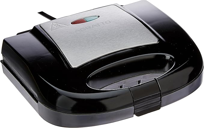Sanduicheira e grelhados com muita praticidade, fácil de usar e limpar, chapas com camada antiaderente, facilitando na hora de retirar os alimentos, trava na alça para prensar seu sanduiche e grelhado.