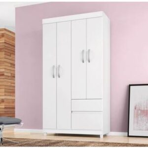 Guarda-Roupa 4 pts 2 gavetas Lotus Demóbile Cor Branco e Rosa