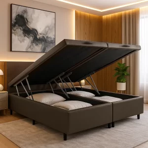 Base Box Baú Casal king 193 cm Luckspuma Corino com Pistão a gás – Marrom