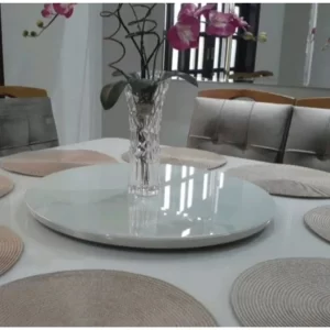 Centro De Mesa Giratorio 50cm Sem Fixação Laca Off White COM VIDRO FIXO