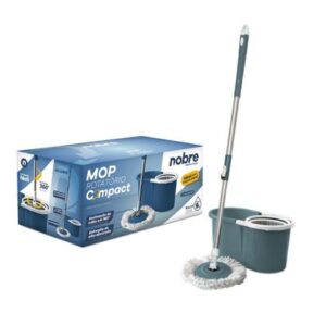 Conjunto Mop Giratório Compact Nobre 9L Rotatório 180 Microfibra Balde Cesto Plástico Cabo C/ Suporte