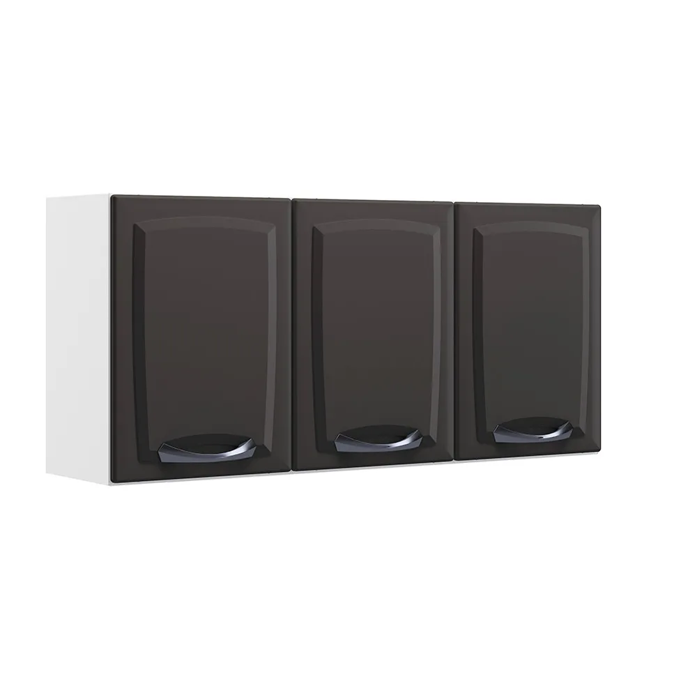 Armário Aéreo 3 Portas Branco/Grafite da linha New Premium tem um design clássico que nunca sai de moda e é a solução para deixar sua cozinha ainda mais prática e organizada. O armário conta com: