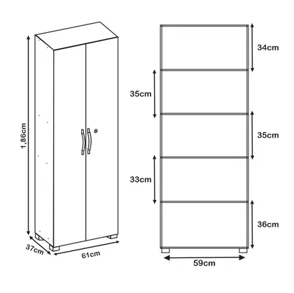 | Dimensões do Produto | Altura: 1,86m Largura: 61cm Profundidade: 37,3cm |