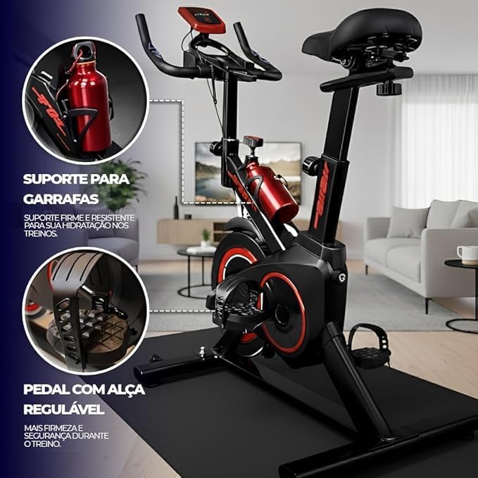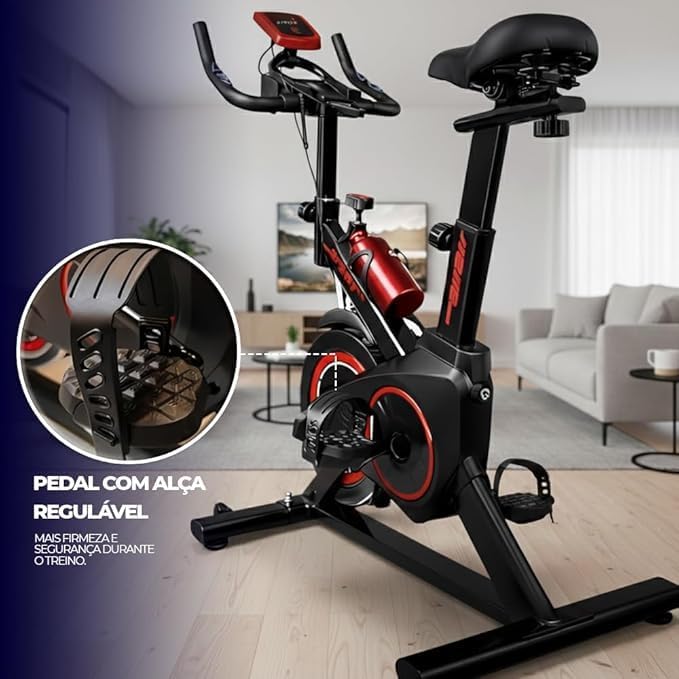 • ♗ SISTEMA DE AJUSTE DE RESISTÊNCIA EM PÉ ♗ Esta bicicleta ergométrica é equipada com uma barra de resistência bidirecional ajustável que pode ser girada para ajustar a resistência, facilitando a personalização da intensidade do exercício de acordo com as necessidades de cada indivíduo.
