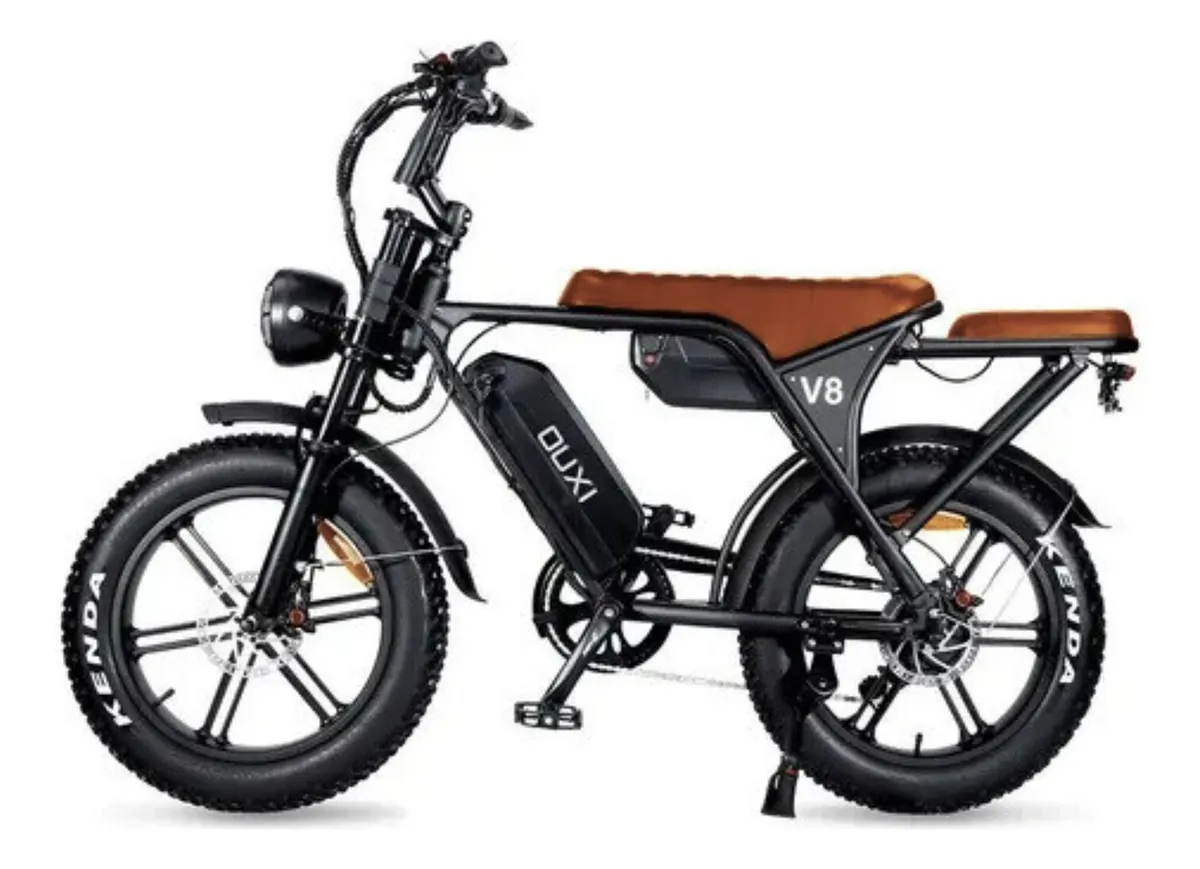LANÇAMENTO 25/26 ÚNICA NO MERCADO LIVRE. 2 BATERIAS AUTONOMIA DOBRADA. ATENÇÃO: BICICLETA ORIGINAL OUXI, COM TODOS OS CERTIFICADOS DE AUTENTICIDADE OUXI, EM PROL DO COMBATE A FALSIFICAÇÕES. DESCONFIE DE PREÇOS ATRATIVOS, SUA SAÚDE E SEGURANÇA SÃO MUITO MAIS IMPORTANTES. Com resistência à água classificada como IP54, o V8 foi construído para condições versáteis. Recursos incluem rodas OFF ROAD FAT TIRE de 20*4.0” Possui certificações incluindo CE, FCC, ROHS, LVD, EMC e EN15194 MD. A bicicleta elétrica Ouxi V8 S é a escolha perfeita para quem busca desempenho e conforto na cidade e em aventuras ao ar livre. Com um motor potente de 1000 W, ela atinge velocidades de até 50 km/h, tornando suas deslocações rápidas e eficientes. Seu design robusto apresenta aros de 20 polegadas e suporte para até 150 kg, ideal para carregar dois passageiros com segurança. Equipada com duas baterias de lítio de 15 Ah, a Ouxi V8 S oferece uma autonomia de até 120 km, permitindo que você explore novos caminhos sem se preocupar com a carga. Seu sistema de propulsão avançado garantirá que você enfrente subidas e longas distâncias sem esforço, enquanto a estrutura resistente assegura durabilidade em qualquer tipo de terreno. Embora não seja dobrável, sua estabilidade e conforto fazem dela uma excelente opção para uso diário e recreativo. Desfrute de um passeio relaxante e seguro, seja com um acompanhante ou apenas aproveitando a liberdade de pedalar ao ar livre. Experimente a liberdade de uma mobilidade sustentável e eficiente com a bicicleta elétrica Ouxi V8 S. É a solução ideal para quem busca praticidade e um toque de aventura no dia a dia.