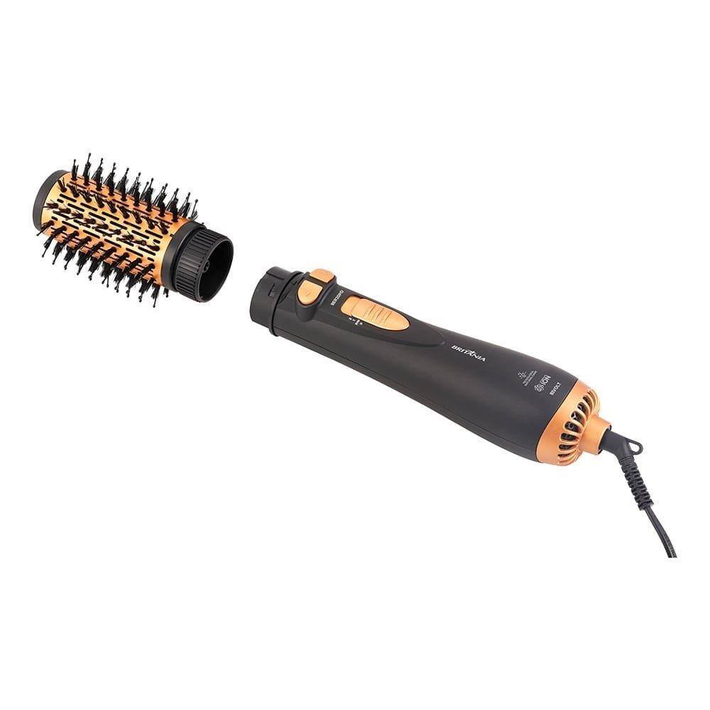 Mais saúde para seu cabelo e praticidade para seu dia a dia com a Escova Rotativa Britânia BER20PD. Ela é perfeita para você! A escova rotativa é 4 em 1: seca, alisa, escova e dá volume aos seus cabelos. Seu Revestimento Gold evita o ressecamento e atrito com o cabelo, pois a tecnologia íons contém nanopartículas de cerâmica e protege os fios, o que garante mais movimento, maciez e brilho. Possui 3 velocidades e 3 níveis de temperatura, é bivolt, e possui cordão giratório com 360° e de 1,8m de comprimento e alça para facilitar o armazenamento. Tenha em casa a melhor escova rotativa, pois com ela você finaliza seus penteados preferidos, ao utilizar das 3 temperaturas, duas velocidades e dois sentidos de rotação.