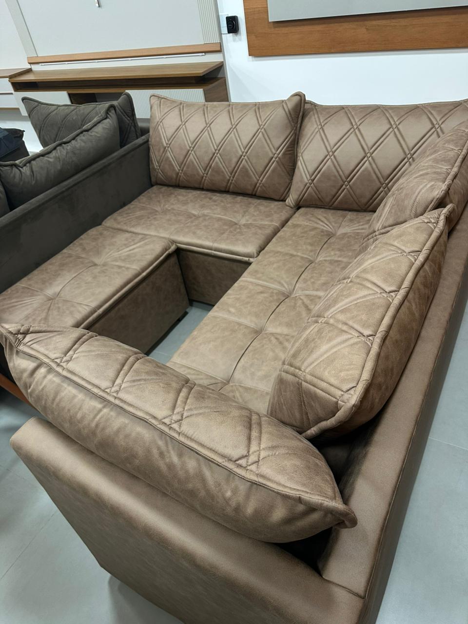 Almofadas soltas mistas (fibras de poliéster e flocos de espuma) e revestimento bordado com espuma D26.