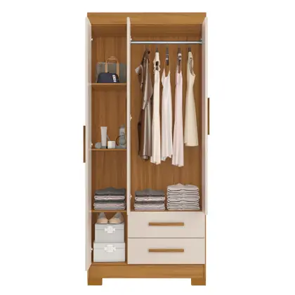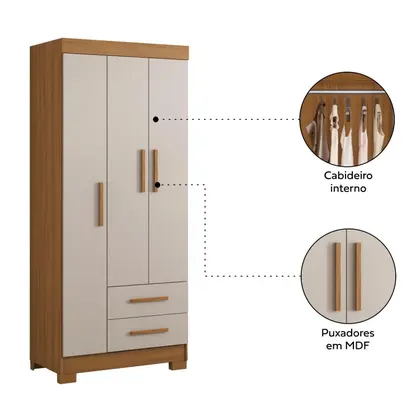 O nosso quarto é o lugar onde descansamos e temos tudo a nossa maneira, sempre pensando no conforto e na organização, não é mesmo? Com o Guarda-Roupa NT 5000 da Notável Móveis você terá espaço para organizar suas roupas e objetos, pois ele possui 3 prateleiras e um cabideiro! Além de gavetas com corrediças metálicas.