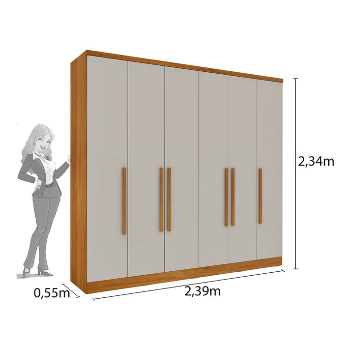Com 239cm de largura, 234cm de altura e 55cm de profundidade (MAIOR DA CATEGORIA), este roupeiro foi pensado para otimizar seu ambiente, tornando-o muito mais bonito e funcional.