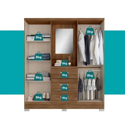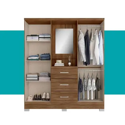 Conteúdo da Embalagem: 1 Guarda Roupa Casal com Espelho 4 Portas Roma Carraro Freijó