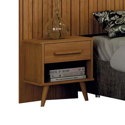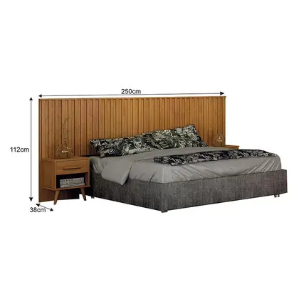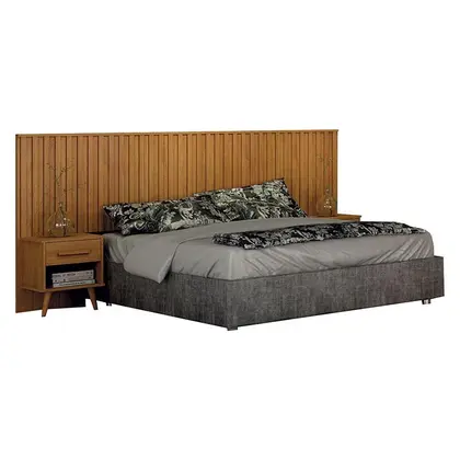 Painel Cabeceira Casal Queen Milano Ripado com Criado Cinamomo Leifer Móveis