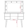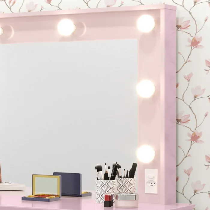| Componentes | Tampo MDF 25mm, Chanfrado, Corrediças telescópicas, Tomada e soquetes para as lâmpadas, Com sapatas protetoras, Espelho, Banquetas com almofada capitonê |