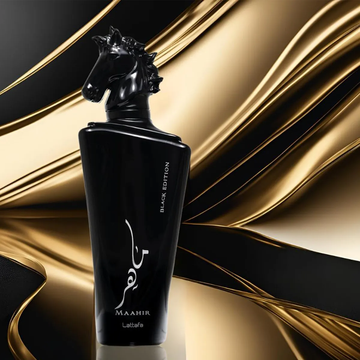 A família olfativa âmbar especiado proporciona uma combinação sofisticada de notas quentes e envolventes, criando uma aura de mistério e sedução. Lançado em 2022, Maahir Black é uma escolha contemporânea que reflete a riqueza da cultura dos Emirados Árabes Unidos.
