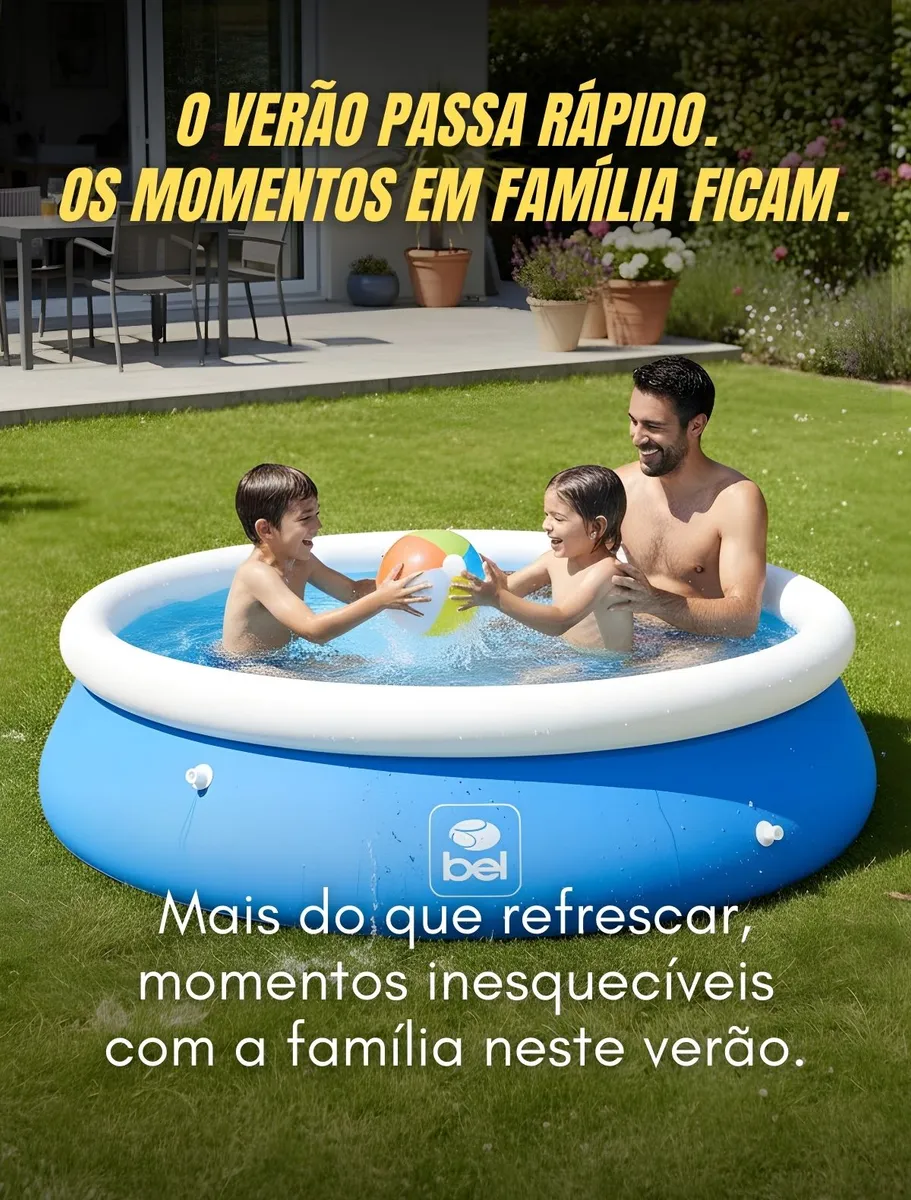 CARACTERÍSTICAS: -Capacidade: 1900 Litros -Formato: Redonda -Diâmetro: 2,15 metros -Altura: 63 centímetros -Material: PVC e Poliéster de tripla camada -Cor: Azul -Marca: Bel A Piscina Inflável 1900 Litros Bel é a escolha ideal para quem busca refresco e diversão nos dias mais quentes do ano. Com um design prático e moderno, ela se adapta perfeitamente ao seu jardim ou quintal, proporcionando momentos de lazer inesquecíveis para toda a família com total segurança e conforto. Desenvolvida com materiais de alta tecnologia, esta piscina oferece uma montagem extremamente simples: basta inflar o anel superior e enchê-la com água para que a estrutura tome forma. Sua portabilidade permite que você leve a diversão para onde quiser, seja em viagens ou na casa de veraneio, ocupando pouco espaço quando guardada. BENEFÍCIOS: -Montagem Expressa: O sistema de anel inflável permite que a piscina esteja pronta para uso em poucos minutos sem esforço. -Alta Durabilidade: A lona de tripla camada garante resistência contra furos e rasgos, aumentando a vida útil do produto significativamente. -Espaço Otimizado: Com 2,15m de diâmetro, oferece o equilíbrio perfeito entre capacidade de água e ocupação de espaço em áreas externas. DIFERENCIAIS TÉCNICOS: -Revestimento Reforçado: Tecnologia de paredes laterais com espessura tripla combinando PVC e poliéster para máxima estabilidade estrutural. O QUE ESTÁ INCLUSO? 1 Piscina Inflável 1900 Litros Bel e 1 Kit de Reparo Extraforte. O pedido acompanha nota fiscal? Todo pedido efetuado segue acompanhado de nota fiscal emitida para o CPF/CNPJ informado na compra. Não efetuamos vendas sem emissão de nota fiscal.