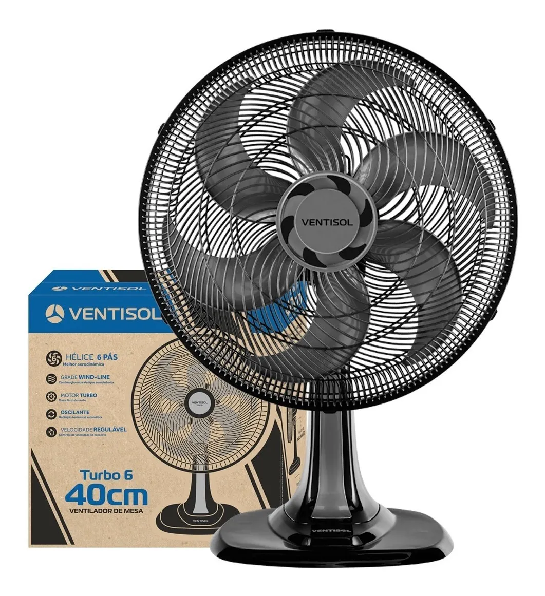 Ventilador De Mesa Oscilante 40 cm 6 Pás Turbo Preto Ventisol