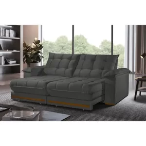 Sofá Retrátil Barcelona 2,90M 5 Lugares Molas Ensacadas TXR Cor Cinza veludo